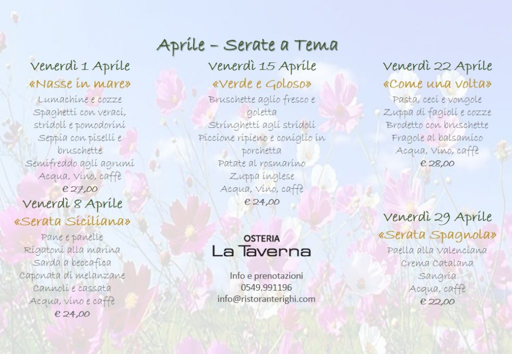 Aprile è alle porte e all'Osteria La Taverna siamo già pronti con una programmazione ricchissima  di eventi.Ogni Giovedì alle 19:00...