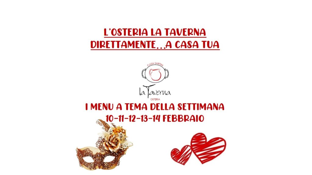10-11-12-13-14 Febbraio 2021 I Menu TAKE AWAY DELLA SETTIMANA di Casa Sartini anche con Consegna a DomicilioCHIAMA ORA 0549...