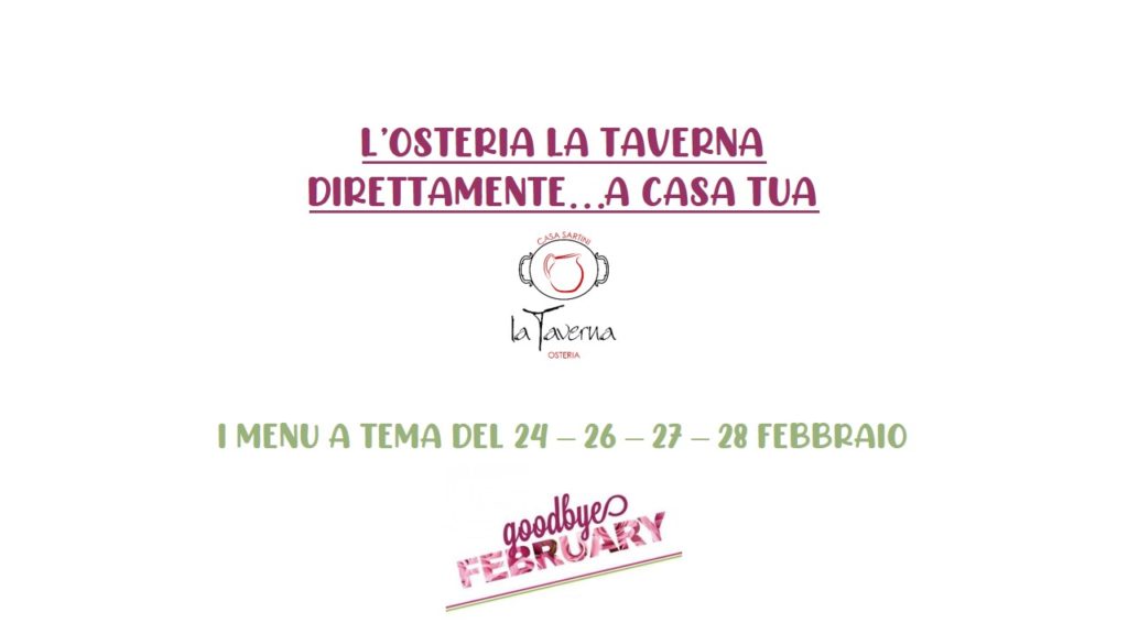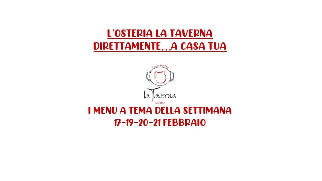 3-5-6-7 Febbraio 2021 I Menu TAKE AWAY DELLA SETTIMANA di Casa Sartini anche con Consegna a DomicilioNOVITA’ è possibile ord...