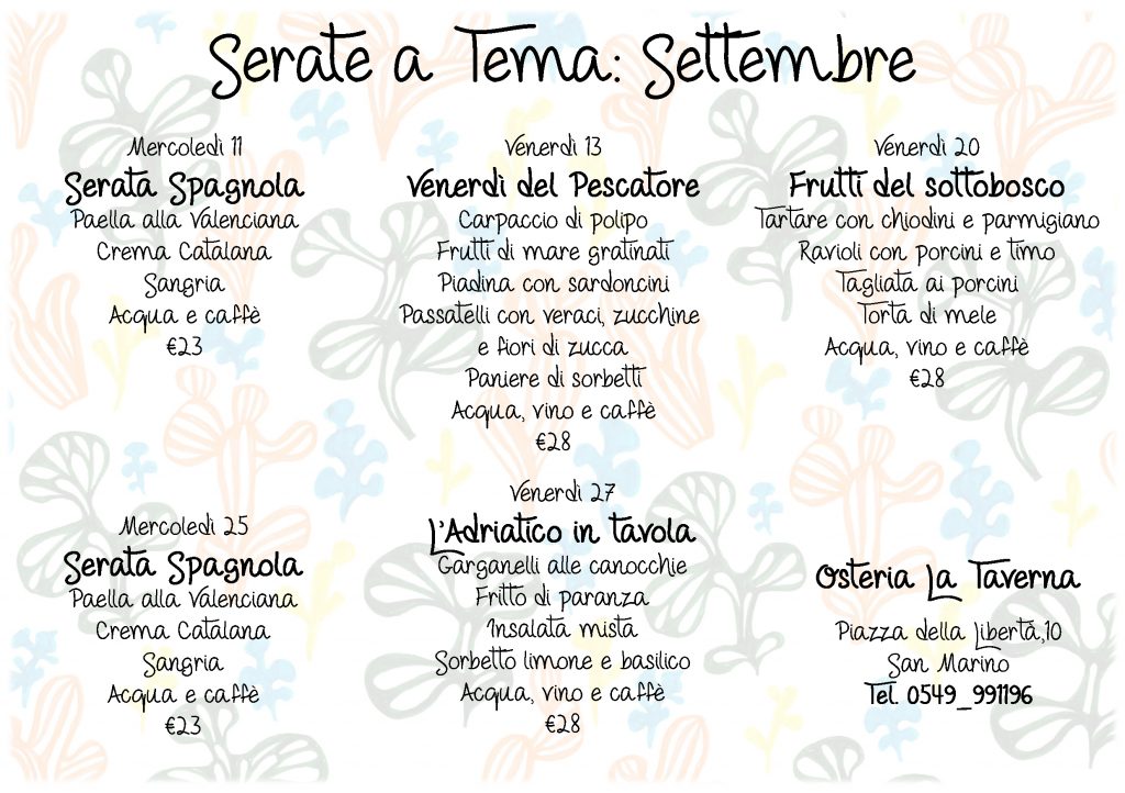 Eccoci a presentare le serate a tema del mese di Settembre de L'Osteria La Taverna !Iniziamo il mese con la Serata Spagnola! Merco...