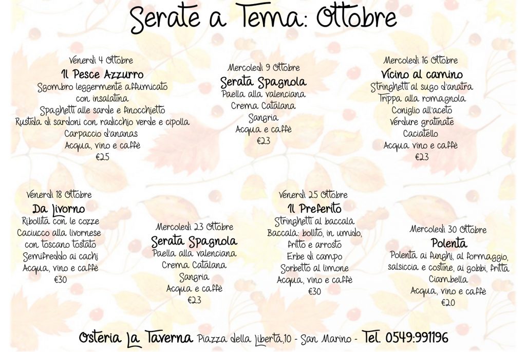 Eccoci a presentare le serate a tema del mese di Ottobre de L’Osteria La Taverna !Venerdì 4 Ottobre – Pesce AzzurroSgombro legg...