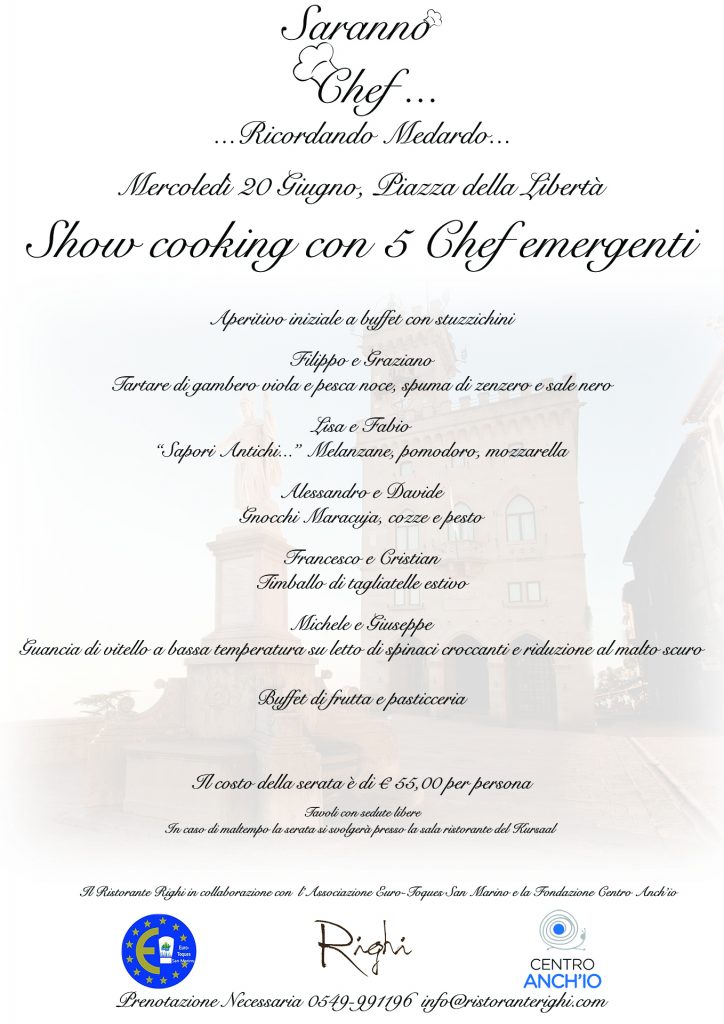 "Saranno Chef" Mercoledì 20 Giugno, Piazza della Libertà Una serata a Giovani promesse della cucina, in ricordo di un Amico e Chef: M...