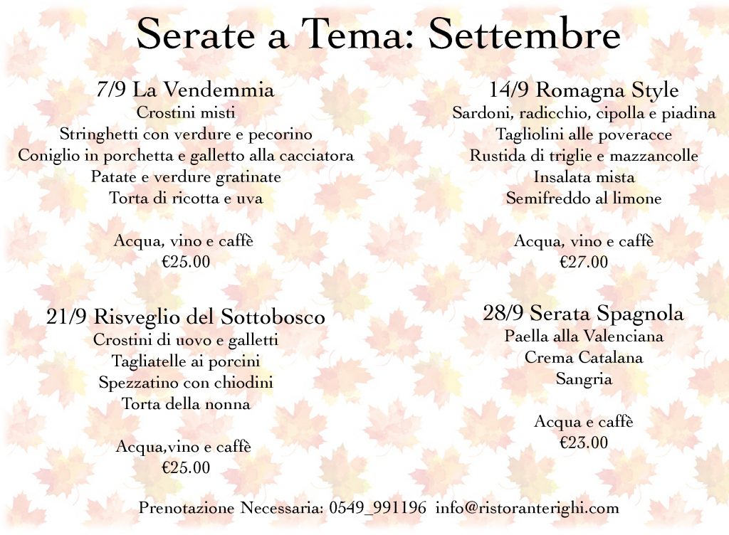 Serate a Tema: il mese di Settembre