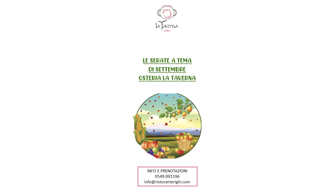 Le Serate a Tema di Settembre dell’Osteria La Taverna – Casa Sartini