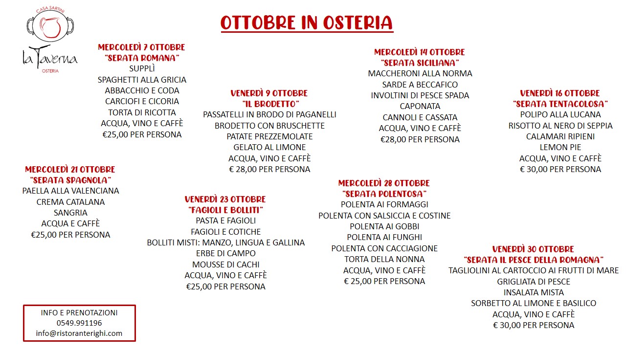 TUTTE le SERATE a TEMA di OTTOBRE