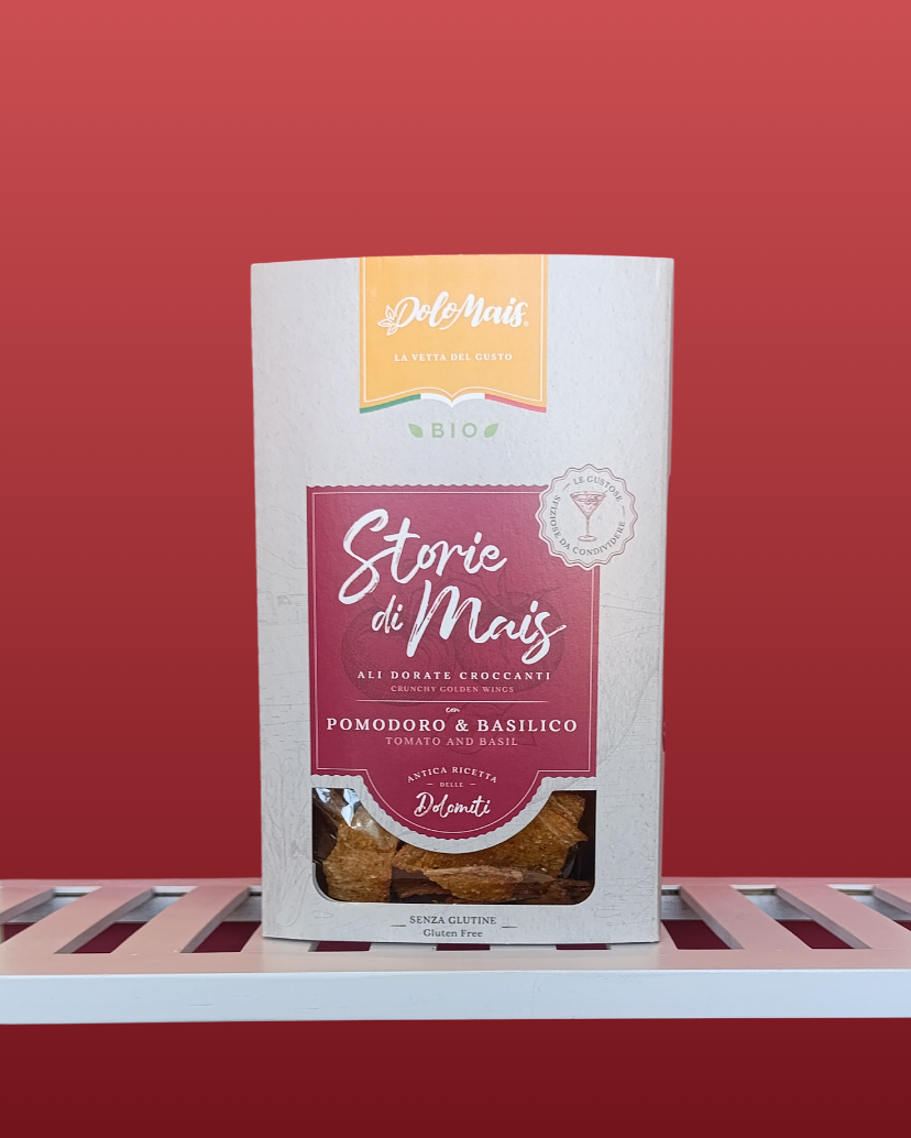 Le Dolomais Chips di Mais “Storie di Mais” rappresentano la sintesi di natura, semplicità e gusto: preparate con mais italiano selezionato e lavorate con cura per garantire un prodotto sano e autentico. Completamente senza glutine, senza additivi, senza olio e senza lievito, sono cotte al forno per offrire una croccantezza leggera ma intensa.