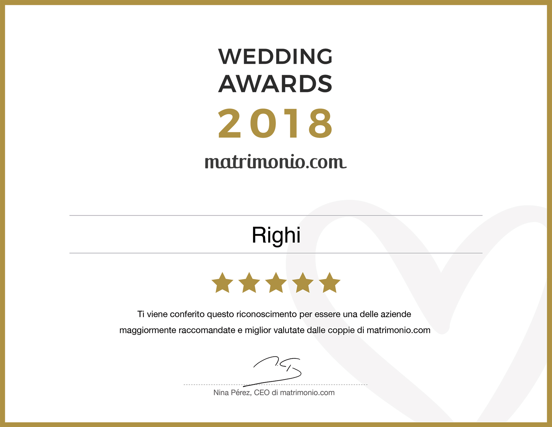 San Marino, 27 Marzo 2018. – Righi Catering ha ricevuto il premio Wedding Awards 2018 nella categoria Catering. Da quattro anni Matrimonio.com assegna questo prestigioso premio al fine di riconoscere l’eccellente lavoro realizzato dalle aziende del settore nuziale, trasformandosi così in un punto di riferimento nella scelta dei fornitori di nozze per le coppie che organizzano il loro matrimonio.
