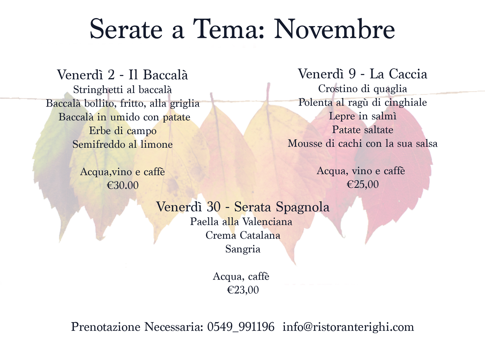 Prenotazione Necessaria: 0549_991196 o tramite mail a info@ristoranterighi.com