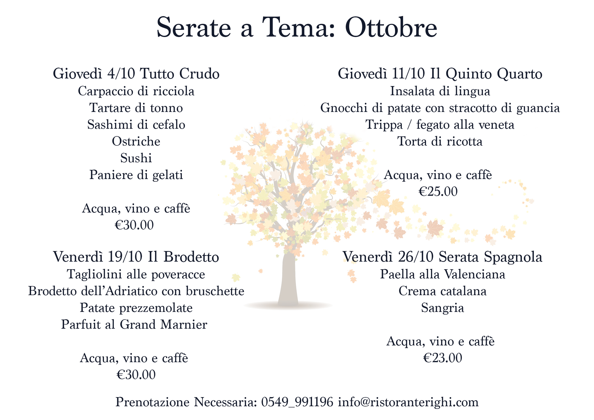 L’Osteria La Taverna presenta le nuove “Serate a Tema” per il mese di Ottobre!