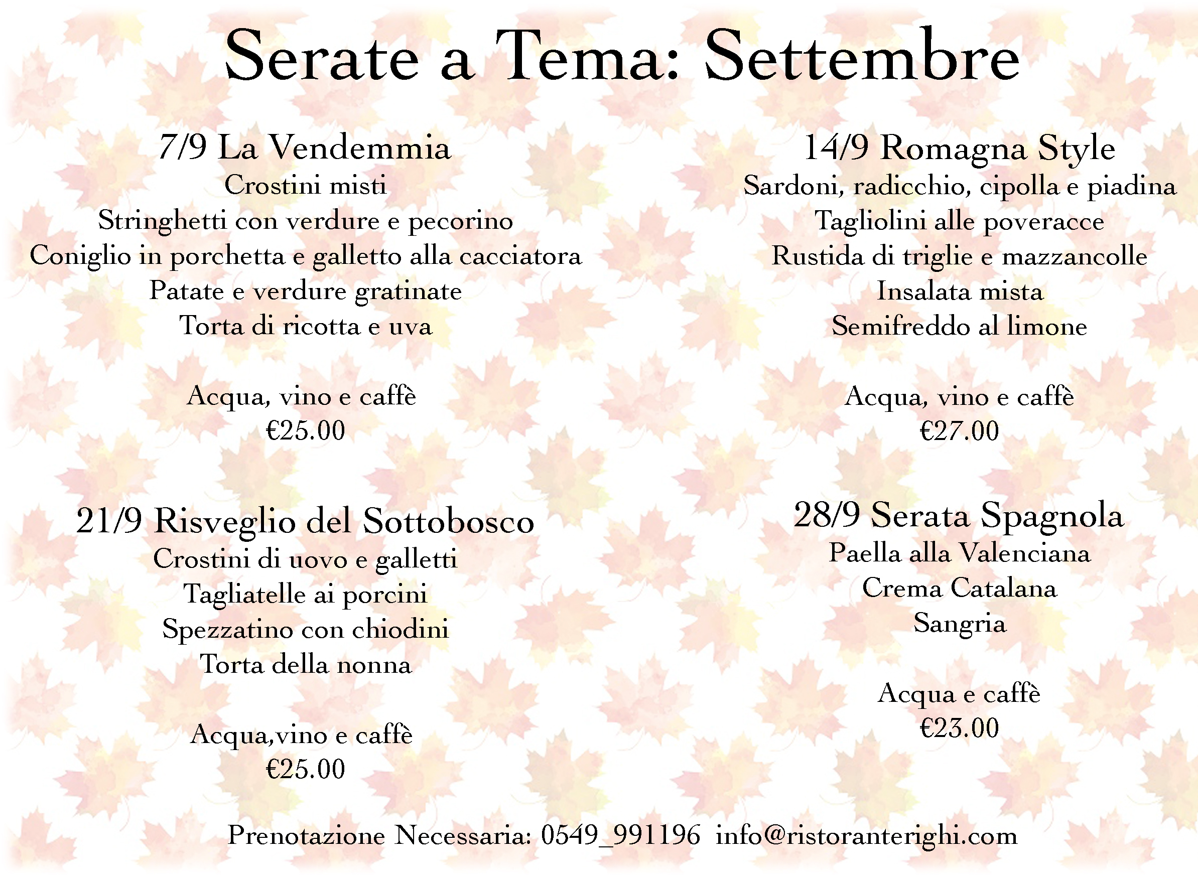 L’Osteria La Taverna presenta le nuove “Serate a Tema” per il mese di Settembre!