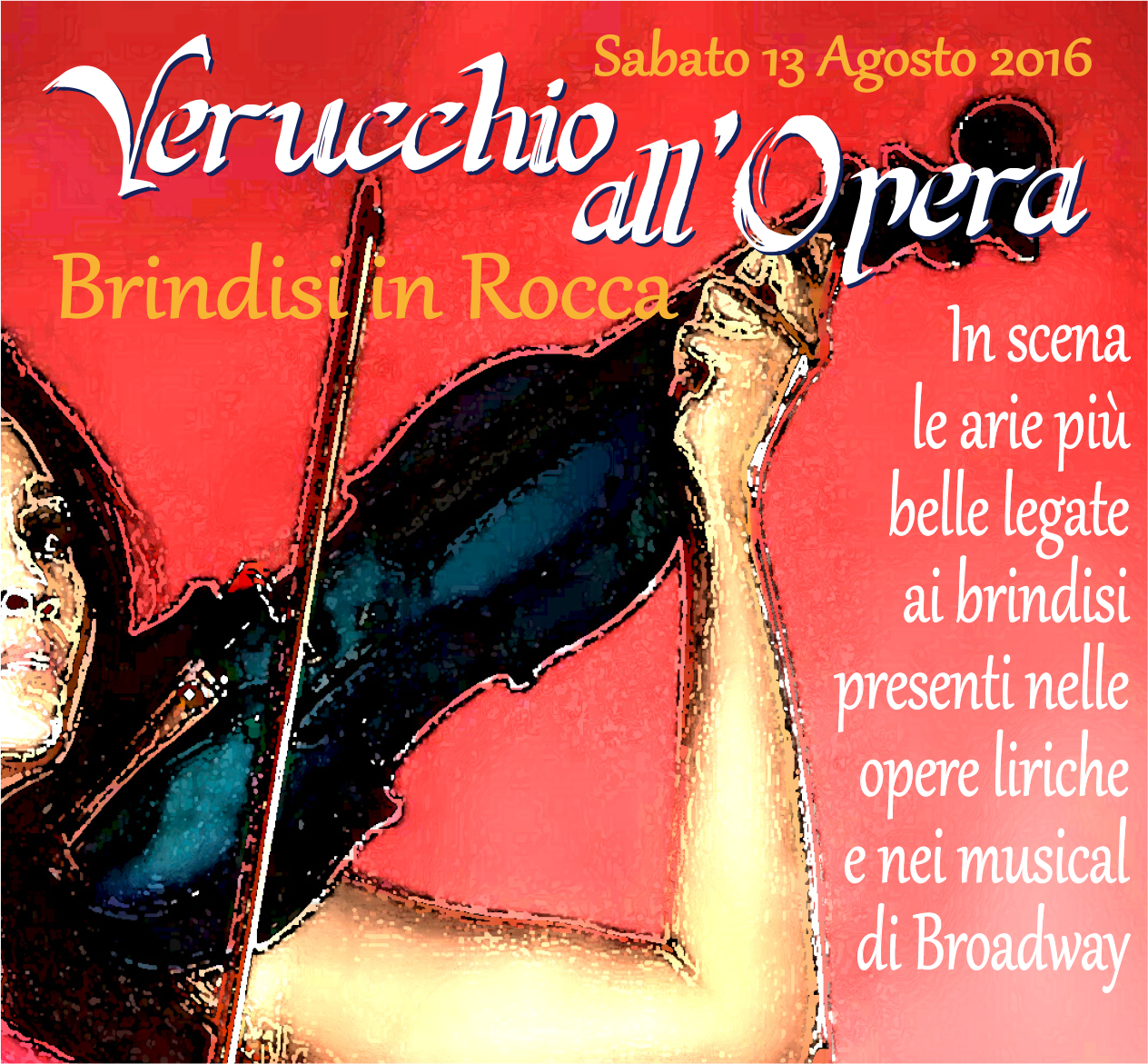 Sabato 13 Agosto, dalle ore 18,30, Apericena sulla terrazza panoramica della Rocca Malatestiana di Verucchio aspettando insieme le più belle “Arie dei Brindisi” tratte da famose Opere e Musical.